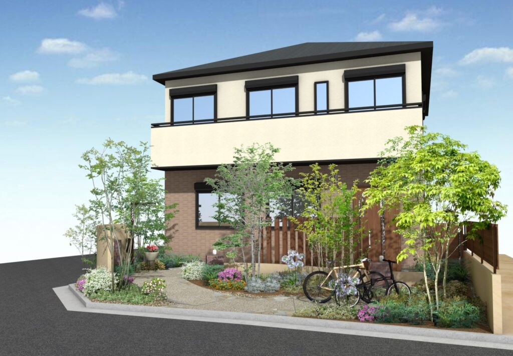 決して長くはない距離ですが、照明や列柱、少し変わった機能門柱を使い、