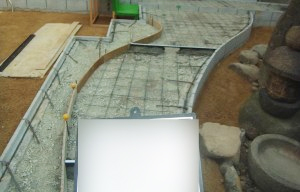 ブロックを積む前のベースやアプローチやタイルの下地の施工前の生コンを打設する前に抜き板型枠をつくるんですが