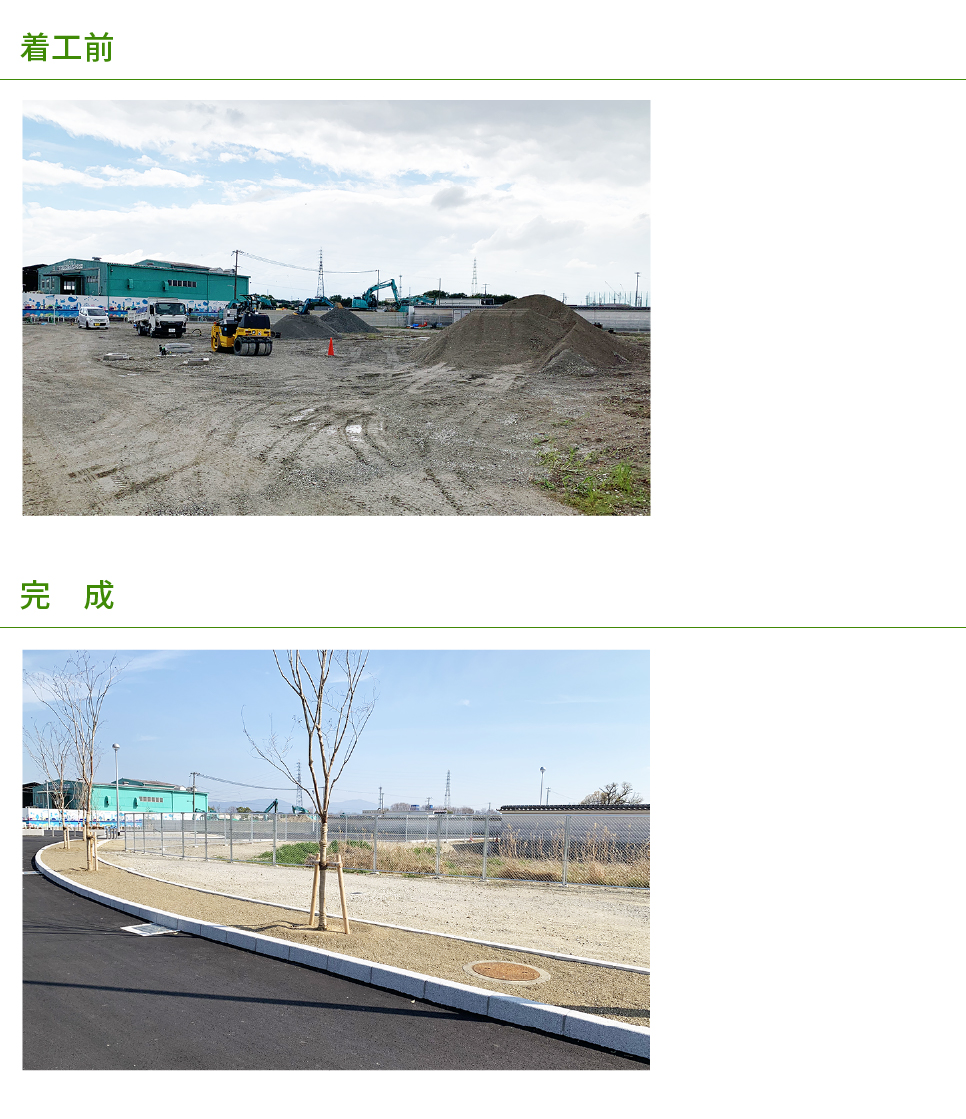 広い駐車場と芝生スペースが整備され、明るくきれいな空間に生まれ変わりました。