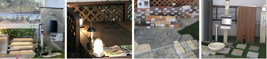 ウッドデッキや人工芝、床材のタイルやブロック、門柱や宅配ポスト、お家廻りやお庭に設置できる照明などなど、エクステリア商品が集結!