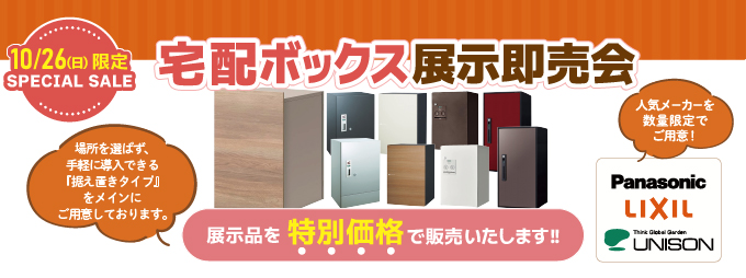「Panasonic」や「Lixil」、「Unison」など、人気メーカーの人気モデルの宅配ボックスが大変お得にご購入いただける機会となっております♪