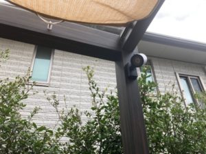 テラス屋根に2か所、お庭部分にも2か所スポットライトを設置しましたので、夜もお庭で過ごすことも可能に!
