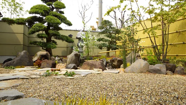 蹲を広くとったアイディアが活きたプランとなりました。自然体な石組で庭を広く見せ、縁側からの眺めも見応えがあります。また植木は1年を通し楽しんで頂けるものを選びました。